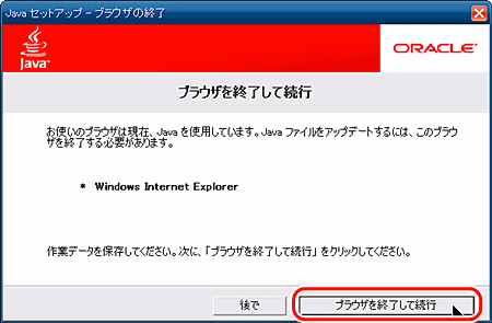 (4)”ブラウザを終了して続行” ⇒ [ブラウザを終了して続行]