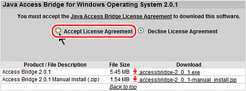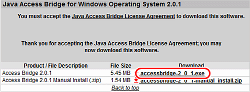 (3)ORACLE社 Java Access Bridge for Windows Operating System 2.0.1 を開く。