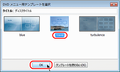 複数の動画を1枚のDVDに焼くために、どの動画を再生するか選択できるタイトルを作成します。