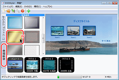 (7)[背景画像]タブを選択し、好みの背景をダブルクリックする。