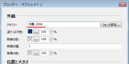 (11)枠のついた画像の下の文字をダブルクリックして、”テキスト”を入力する。文字の色、枠線の色、背景の色、枠のサイズを変更して、[OK] をクリックする。なぜか、テキスト中に全角スペースが含まれていると、それ以降の文字が表示されません。