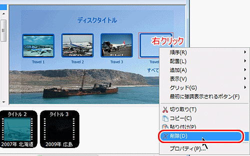 (6)動画の数よりも枠のほうが多い場合は、右クリックをして[削除]を選択する。