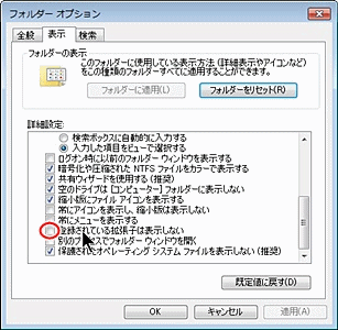 (2)Altキーを押し、 [ツール] [フォルダーオプション] [表示]タブ を選択する。