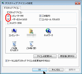 (2)画面の左側メニューで、[デスクトップアイコンの変更]をクリックする。