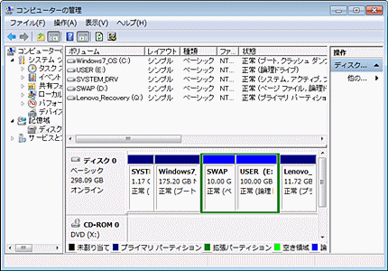 (1)デスクトップの[コンピュータ]を右クリックし、[管理] [ディスクの管理]