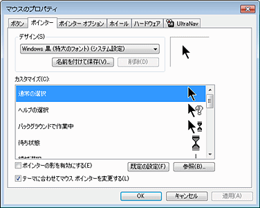 デフォルトのマウスポインターが見づらいという方は、大きくしたり、黒くしたりすると便利です。
