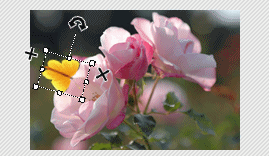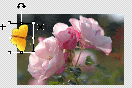 (2)枠の外まで蝶のイラストを移動し、8枚目と同様に[写真+オブジェクト] をクリックして、領域を拡大する。