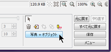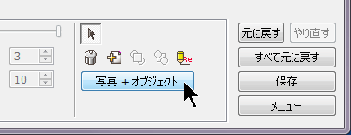 (1)[元に戻す]で、写真とオブジェクトを結合する前までもどす。