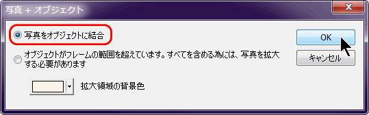(7)はみ出した部分をカットするために、[写真+オブジェクト]をクリックし、
