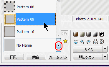(9)[ホーム]タブを選択し、[Patern 09] というフレームを挿入する。
