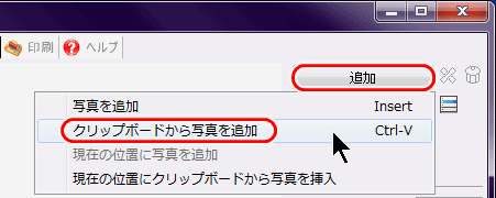 (3)[追加] をクリックし、 [クリップボードから写真を追加] を選択する。