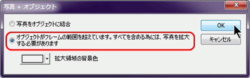 (2)ただし、8枚目だけは、はみ出したイラストも表示させるために、[写真+オブジェクト] をクリックし、