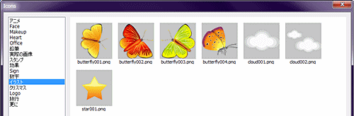 (4)[オブジェクト]タブを選択し、[Icons]ボタンをクリックする。